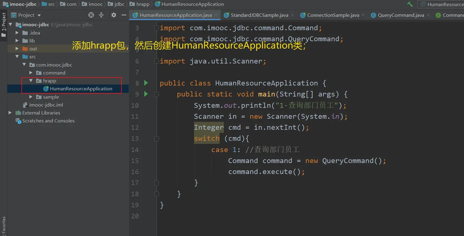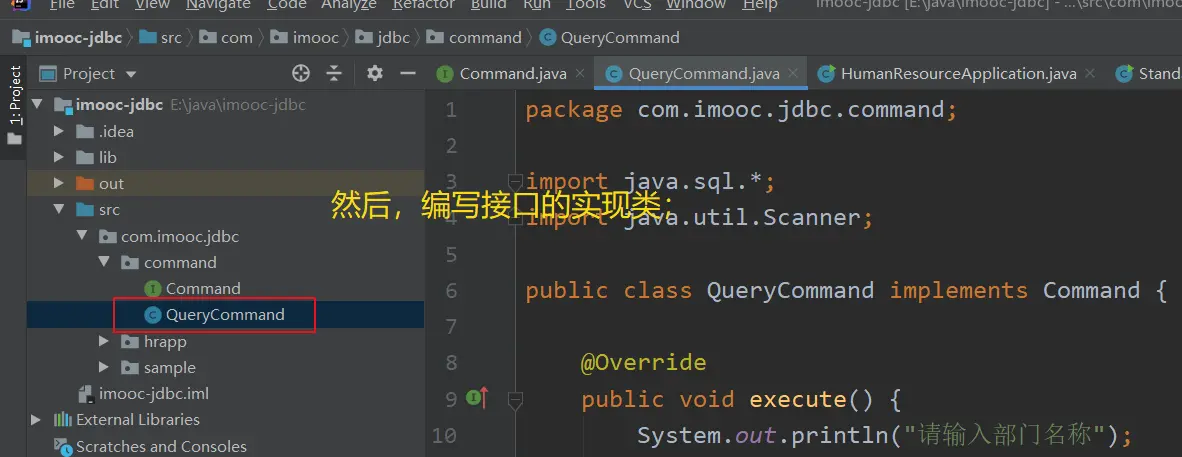 最后,编写接口的实现类:QueryCommand类,去具体实现接口的功能