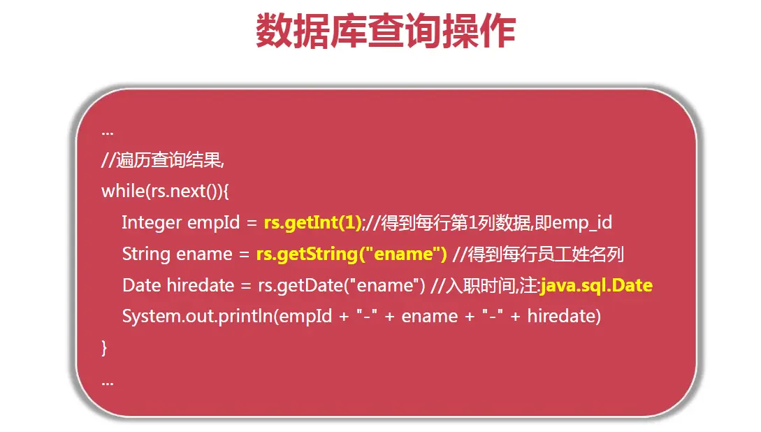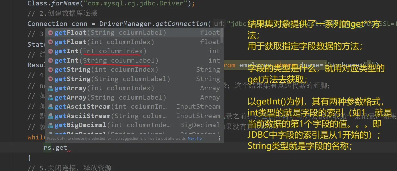 (4) 在遍历查询结果的时,ResultSet对象的get方法有很多种: