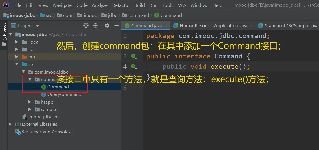 然后,定义一个Command接口;注意这种使用接口的编程的组织方式和套路;