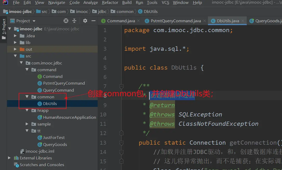 // 这儿将异常抛出,而不是捕获;在实际调用这个getConnection()方法的时候,再对这个异常捕获