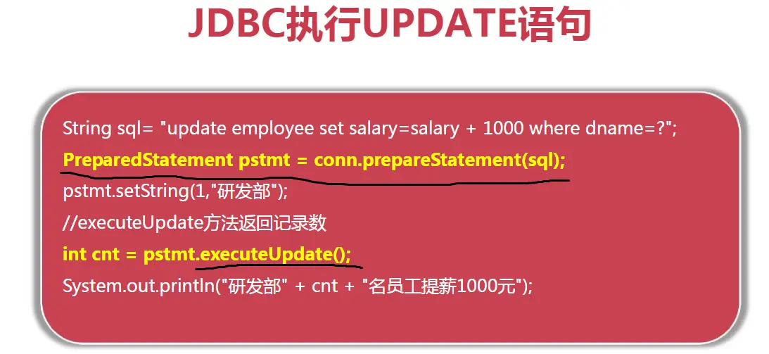 (1)更新也是使用PreparedStatement对象的executeUpdate()方法;