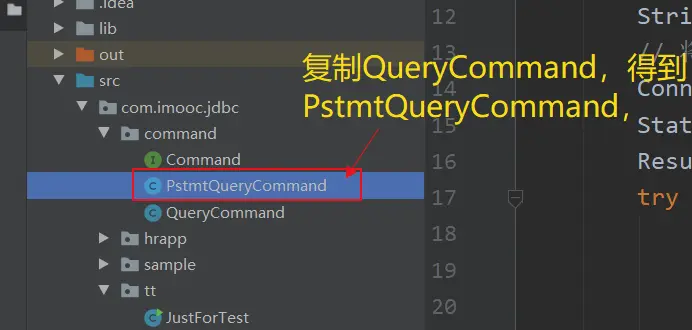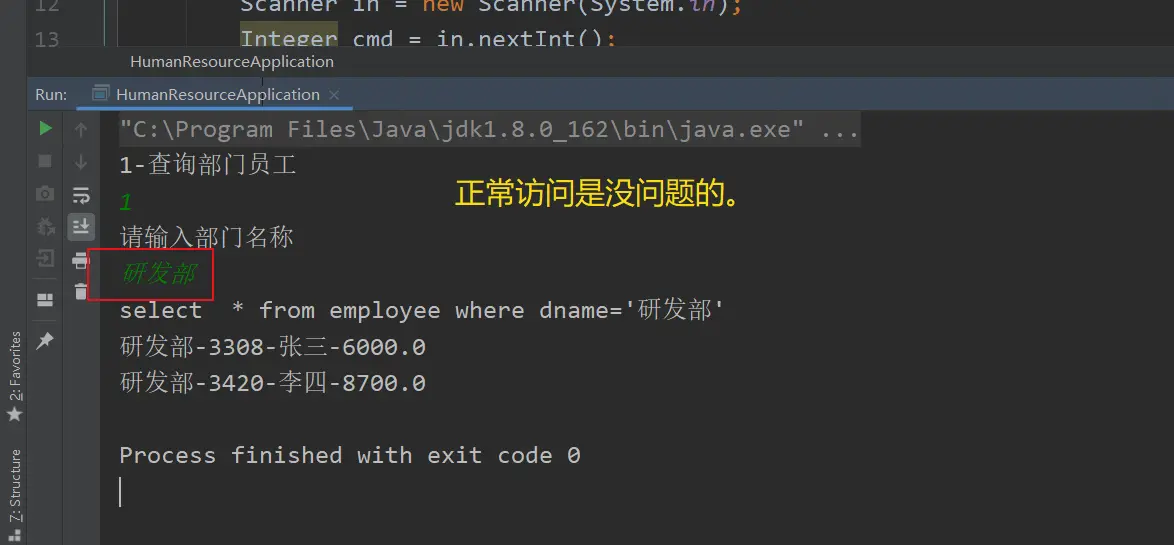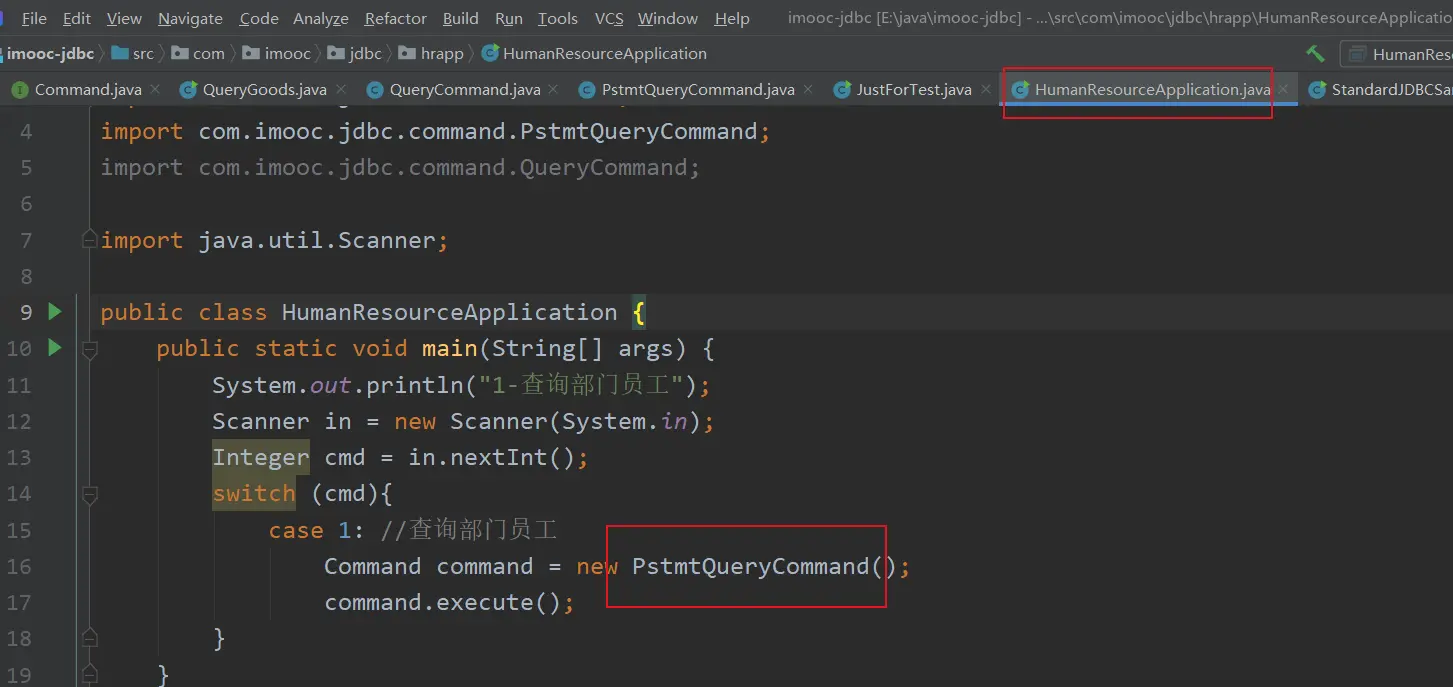 为了演示,在入口类【HumanResourceApplication】对象实例化的时候,改成实例化【 PstmtQueryCommand类对象 】: