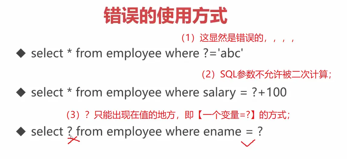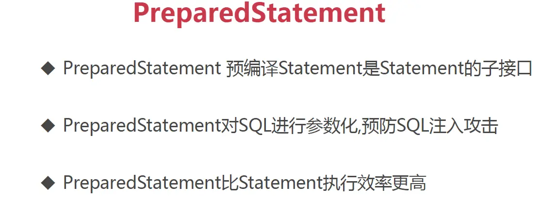 (2) 在实际工作中,推荐使用PreparedStatement;