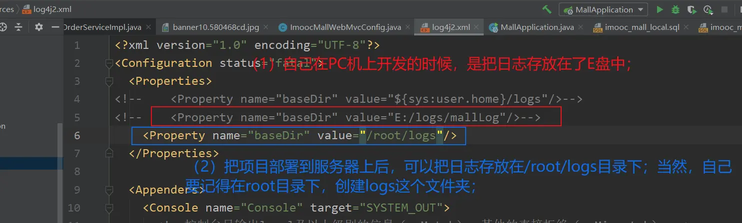 7.一个修改:在log4j2.xml中,修改下日志的存放路径;