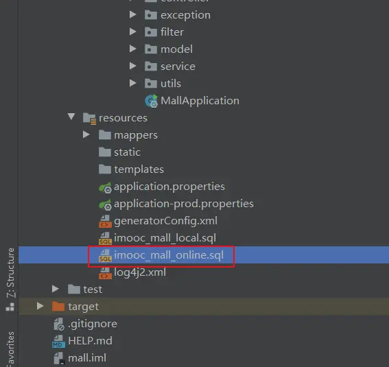 (2)其中imooc_mall_local.sql是我们在自己电脑上开发时,所用到的SQL脚本;如有需要可以参考【SpringBoot电商项目数据库表设计】;