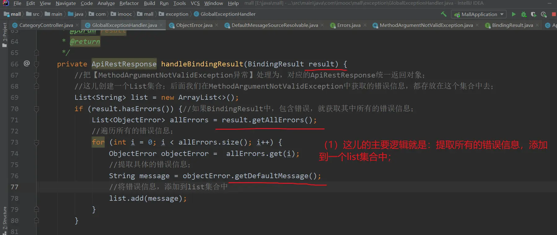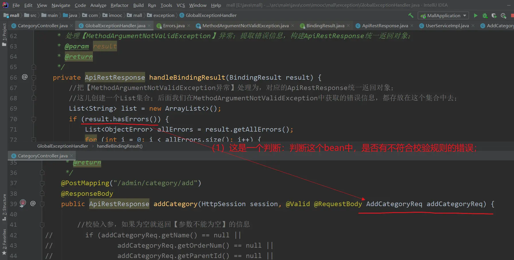 private ApiRestResponse handleBindingResult(BindingResult result) {//把【MethodArgumentNotValidException异常】处理为,对应的ApiRestResponse统一返回对象;