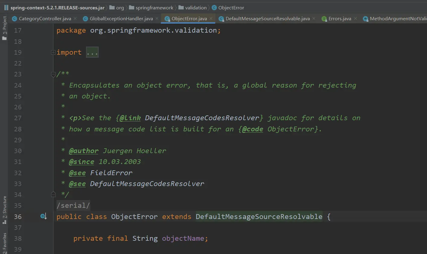 (6)【ObjectError】:可以理解为是一个【封装了Validation校验错误】的对象;(理解,可能不准确……)