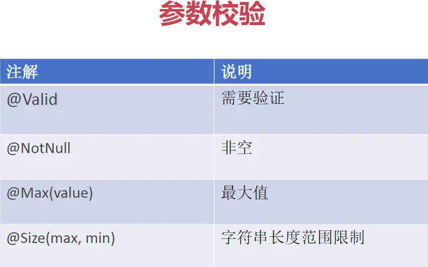 一:参数校验的注解:【@Valid】,【@NotNull,@Max(value),@Size(max,min)】:简述;