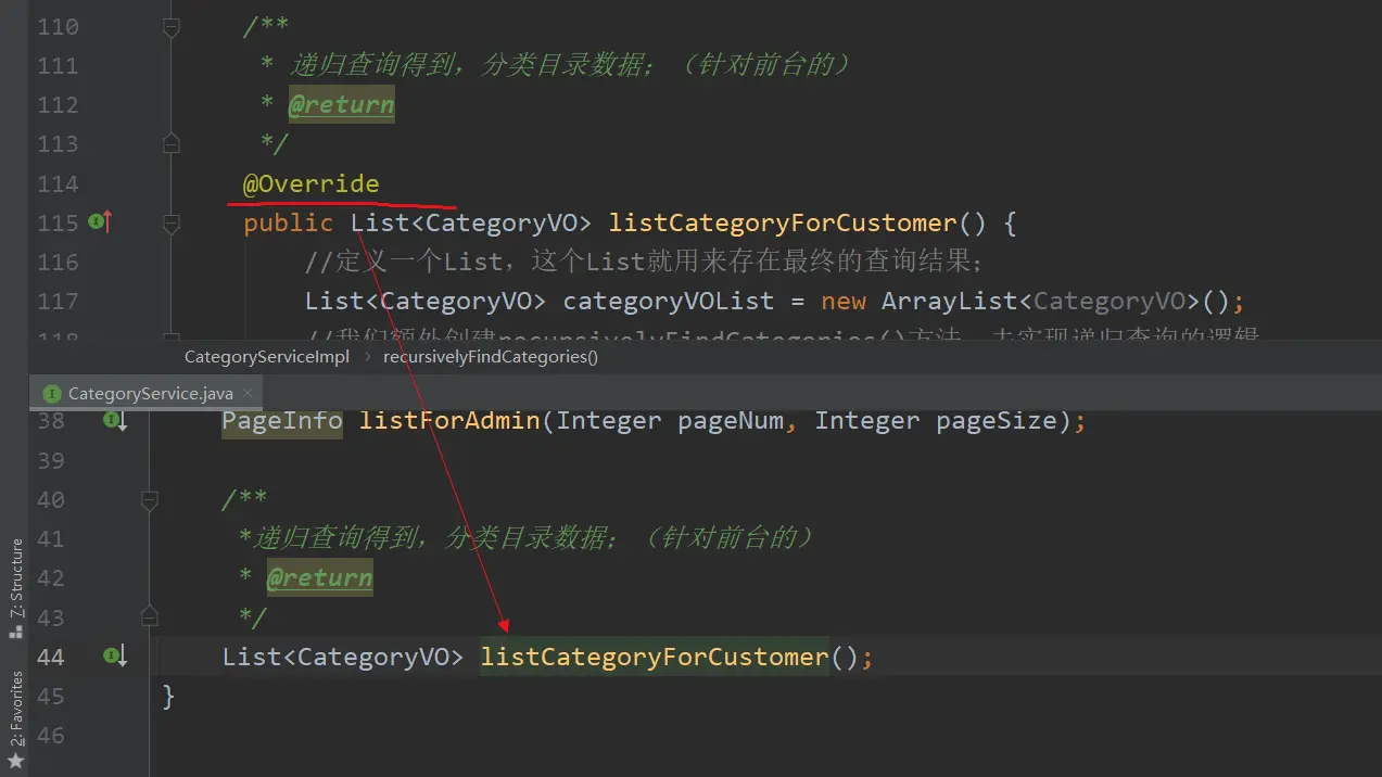(1)在CategoryServiceImpl实现类中,编写分页查询的方法listCategoryForCustomer();(递归查询:核心,重点!!!)