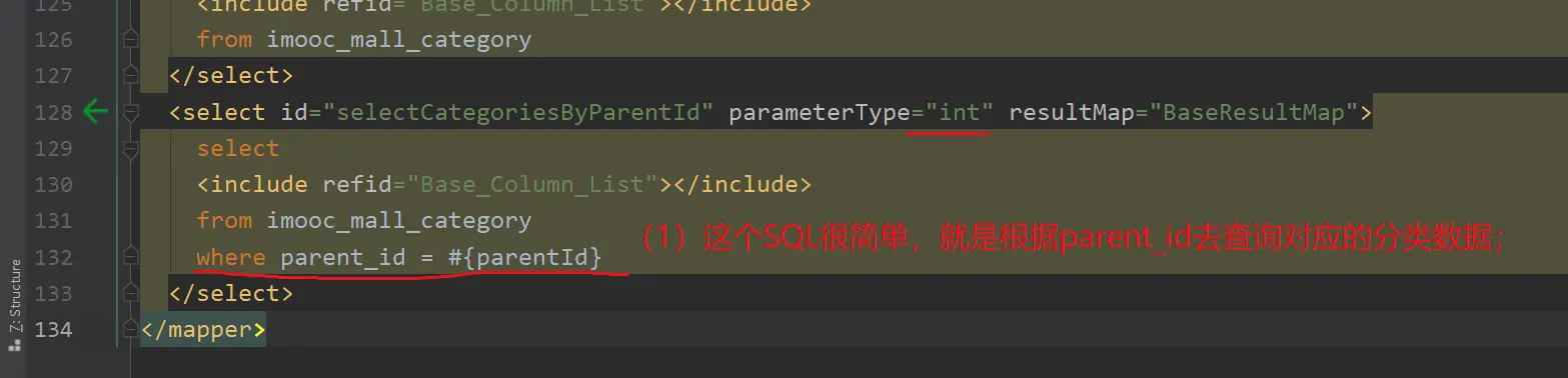 <select id="selectCategoriesByParentId" parameterType="int" resultMap="BaseResultMap">