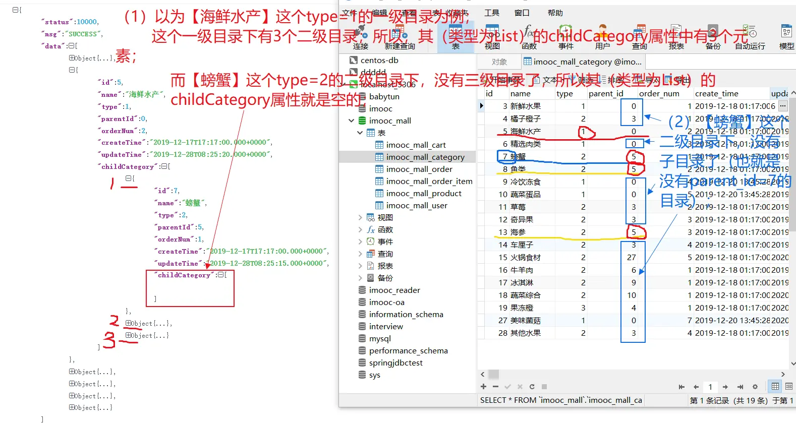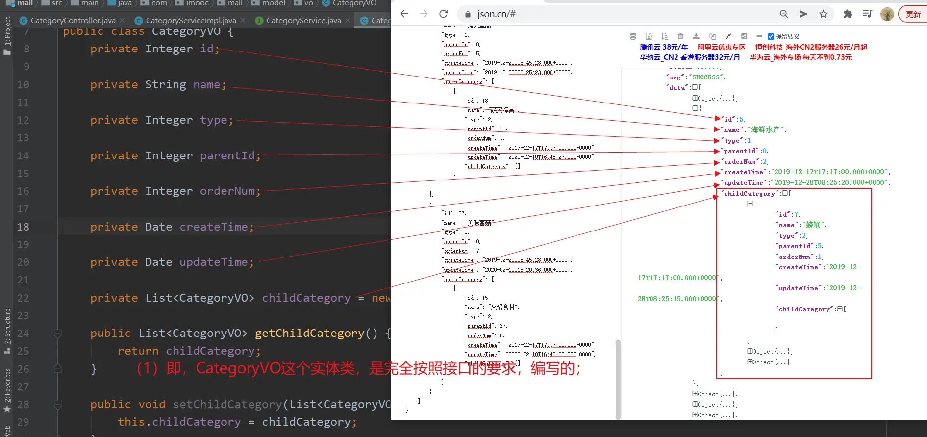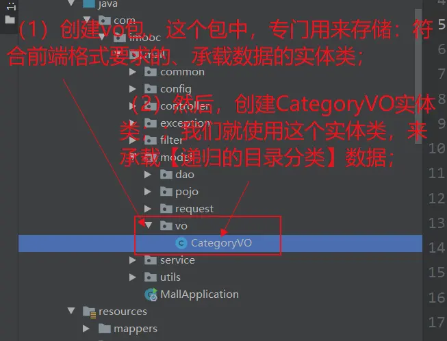 (3)接口文档分析:结果;(递归数据的分析;创建,承载递归数据的实体Bean:CategoryVO)