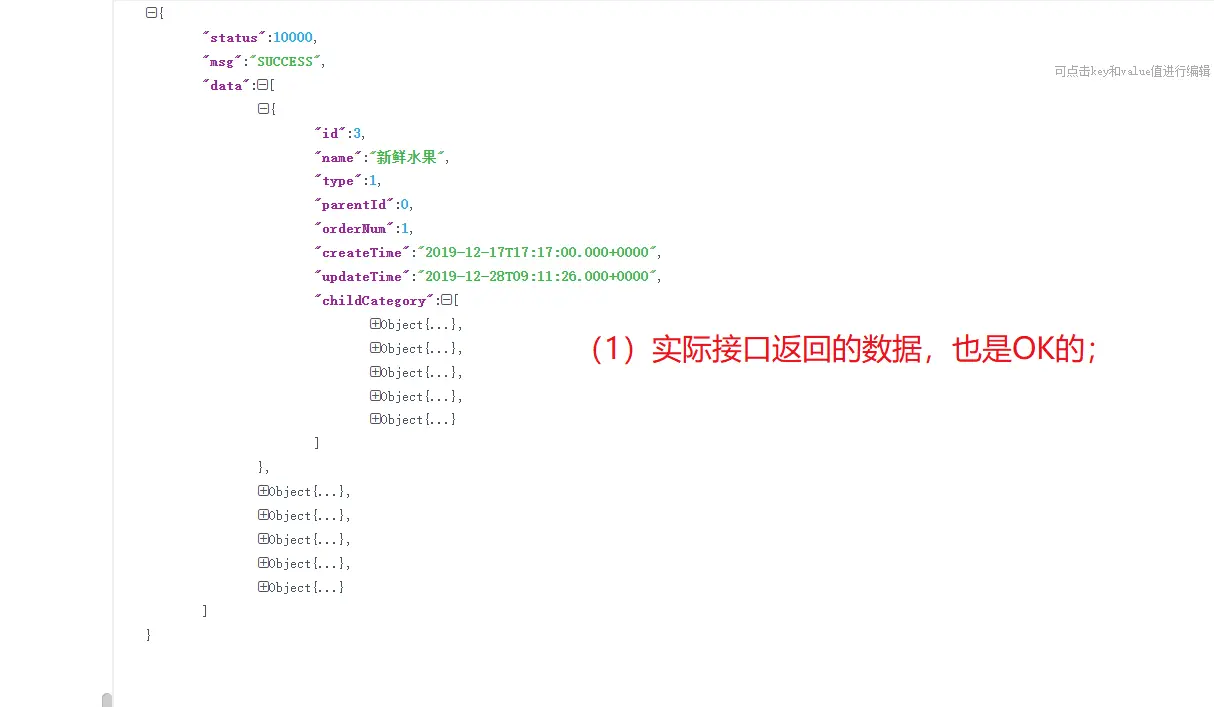 (3) 因为要符合接口的要求:接口的返回结果的ApiRestResponse的data,就是一个List<CategoryVO>;