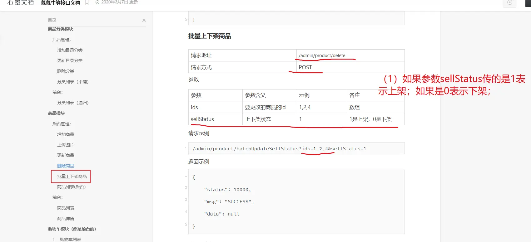 (3) 然后,对于某个商品,其实存在【上架】和【下架】两种状态的;同时,也需要涉及到批量的上下架;批量处理也是一个重点;