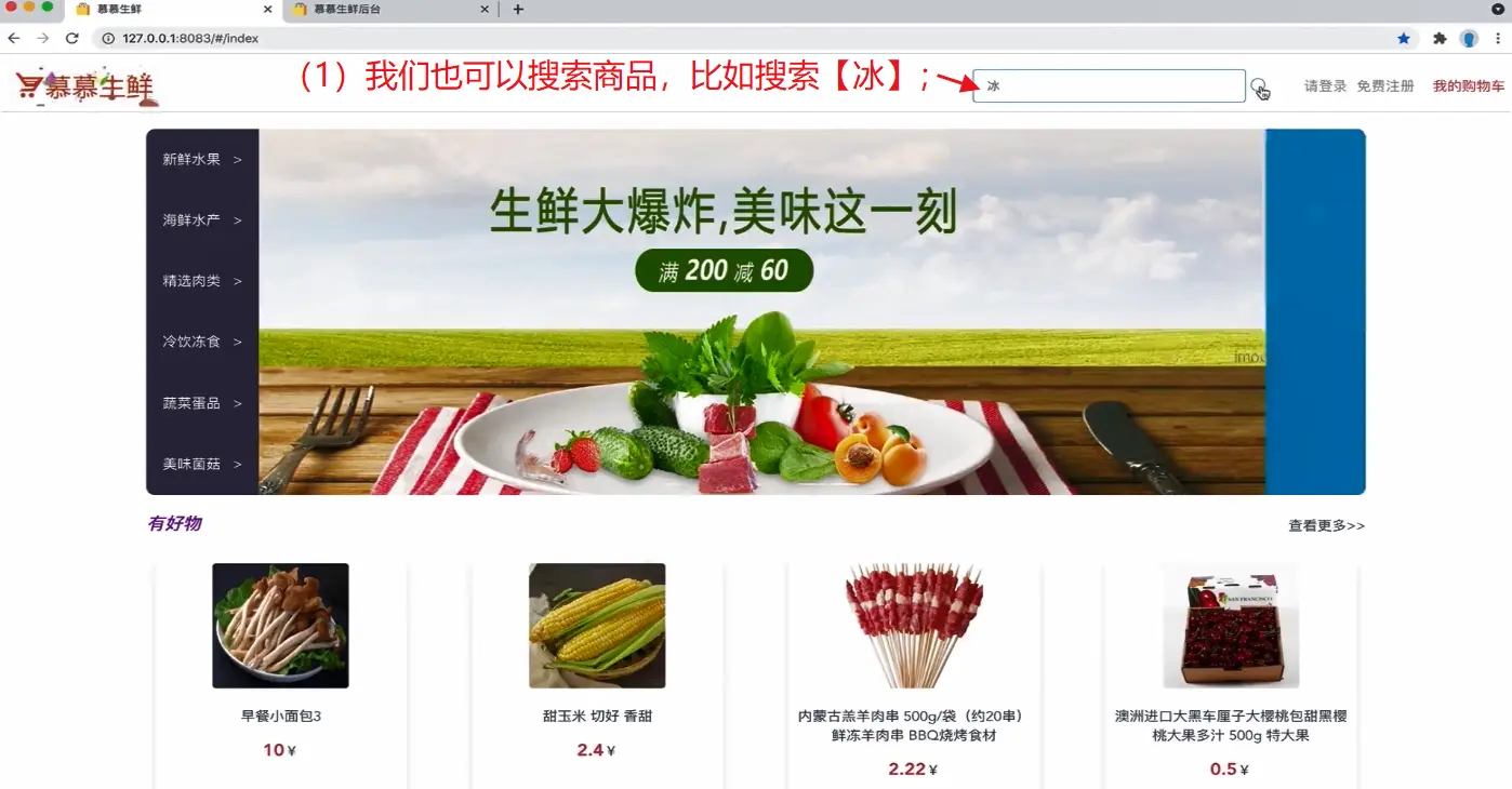 (4) 目录展示:比如,用户只想看进口水果,就是用户选择了进口水果目录下的商品,这就相当于是加了一个筛选条件;