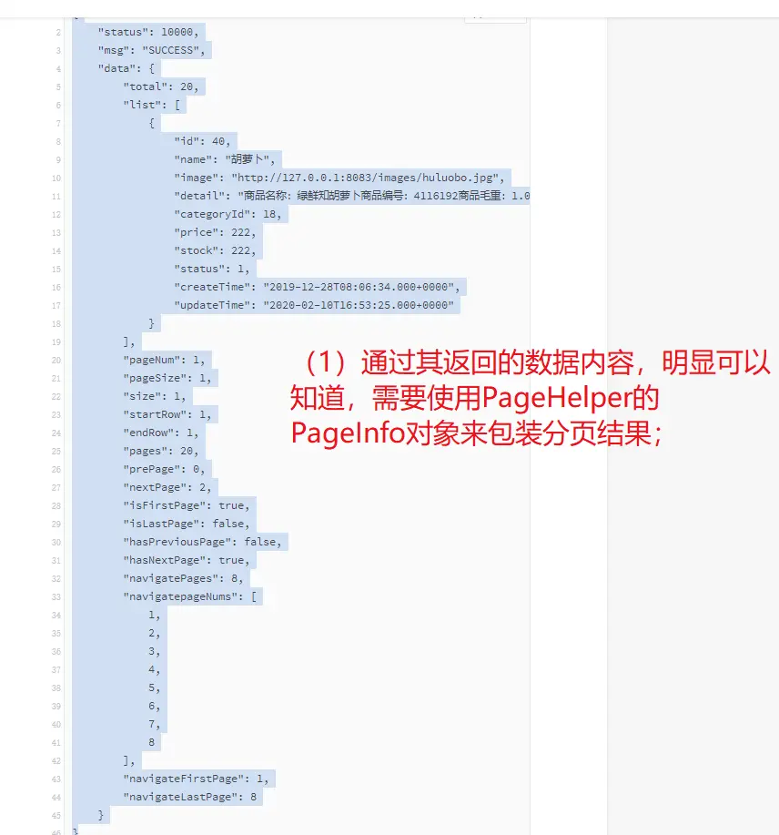 前台这儿也是支持分页的,通过接口返回可知,我们也需要使用PageHelper的PageInfo对象来组织返回数据;