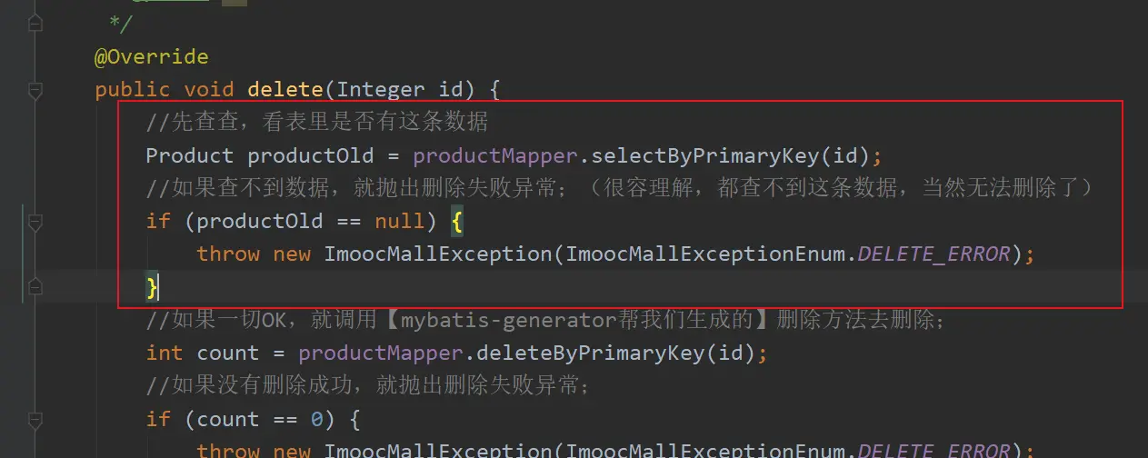 throw new ImoocMallException(ImoocMallExceptionEnum.DELETE_ERROR);
