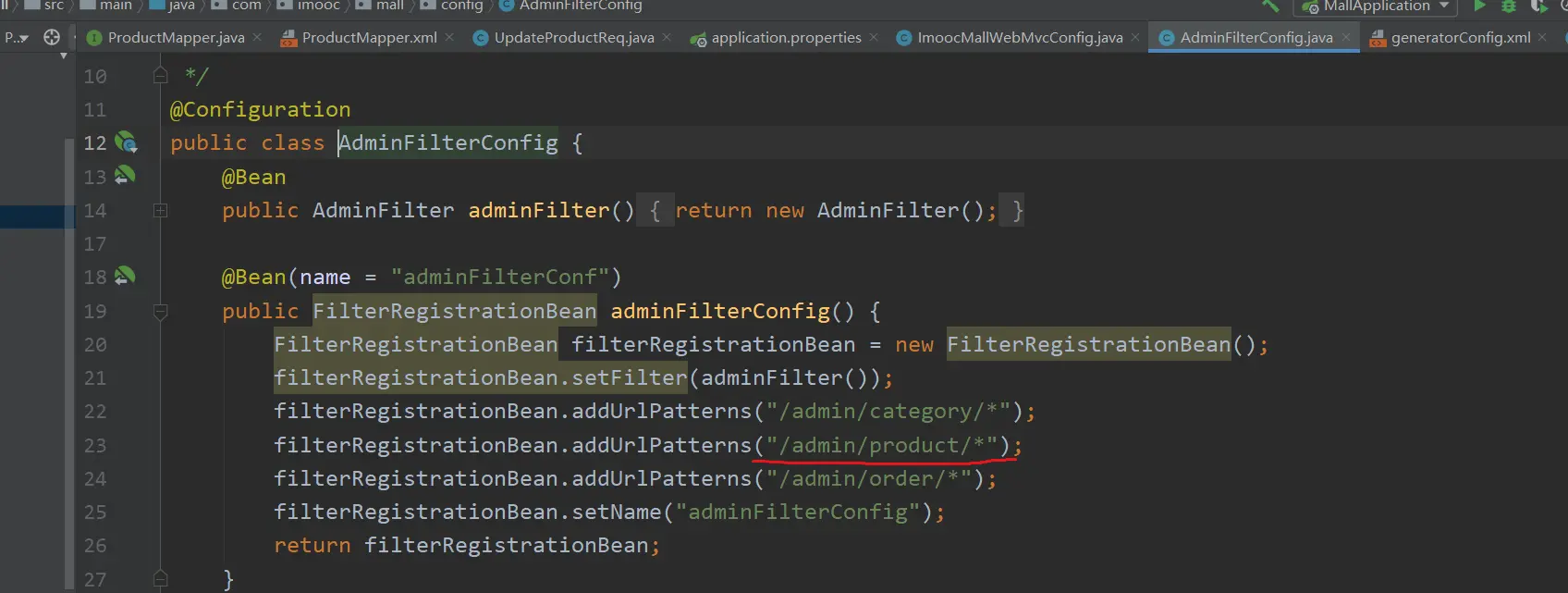 (2) 这个接口是需要管理员用户登录的,而我们在AdminFilterConfig中,也对其进行了统一的处理;