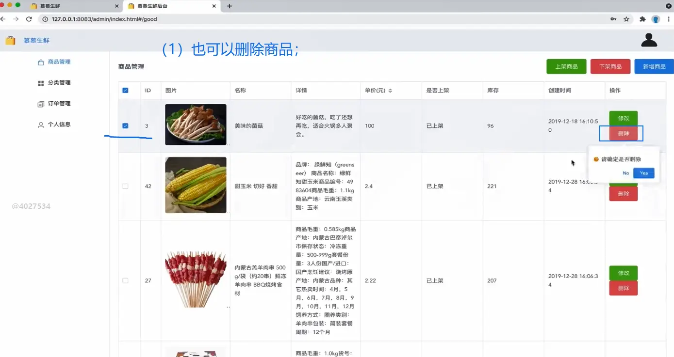 * 后台删除商品