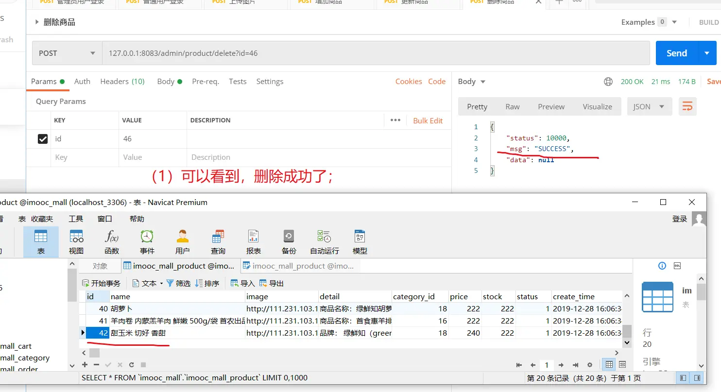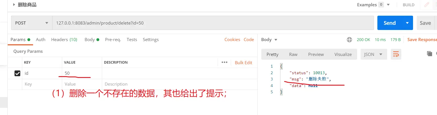 三:测试【删除商品】接口;