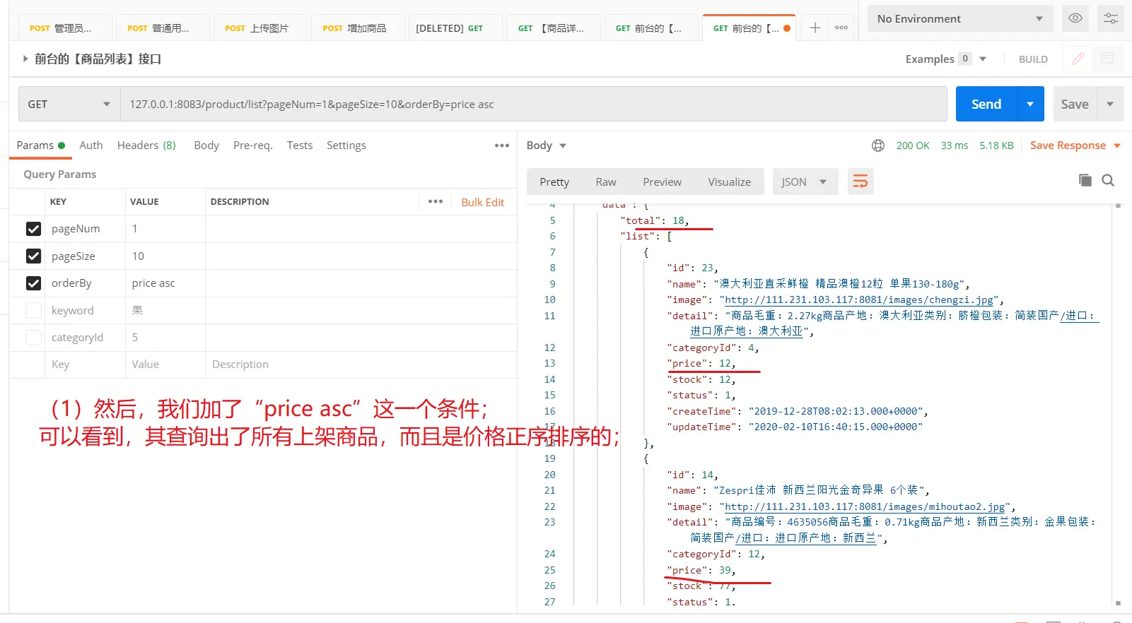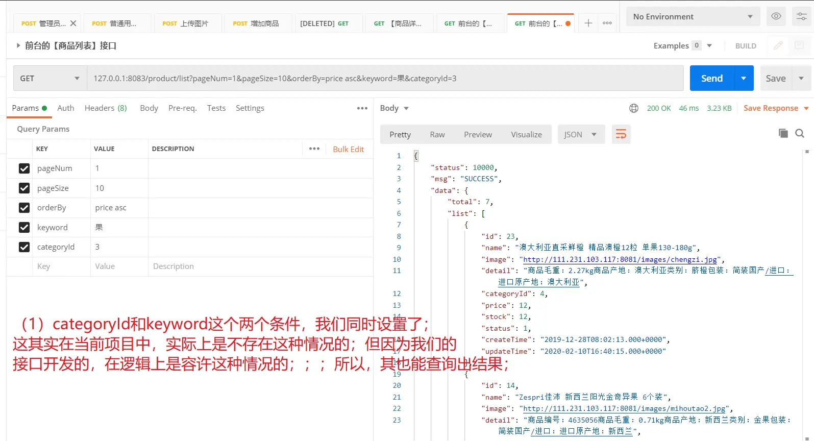 可以看到,前台的【商品列表】接口,这一个接口需要承担的任务还是挺多的;这就需要我们在开发这个接口时,做好条件判断和处理;
