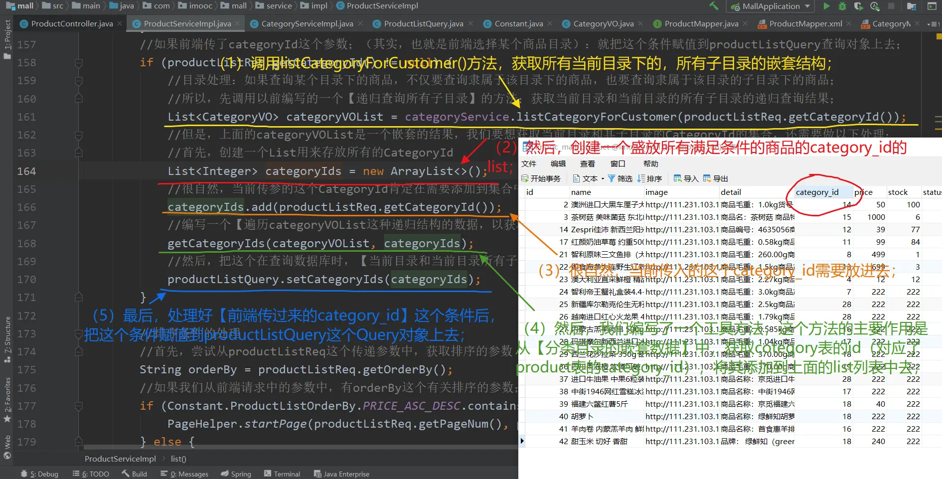 (2) 该Query类的第二个属性,是一个List集合,这里面是:当接口传了categoryId这个商品分类的条件后:所有符合条件的商品的category_id;