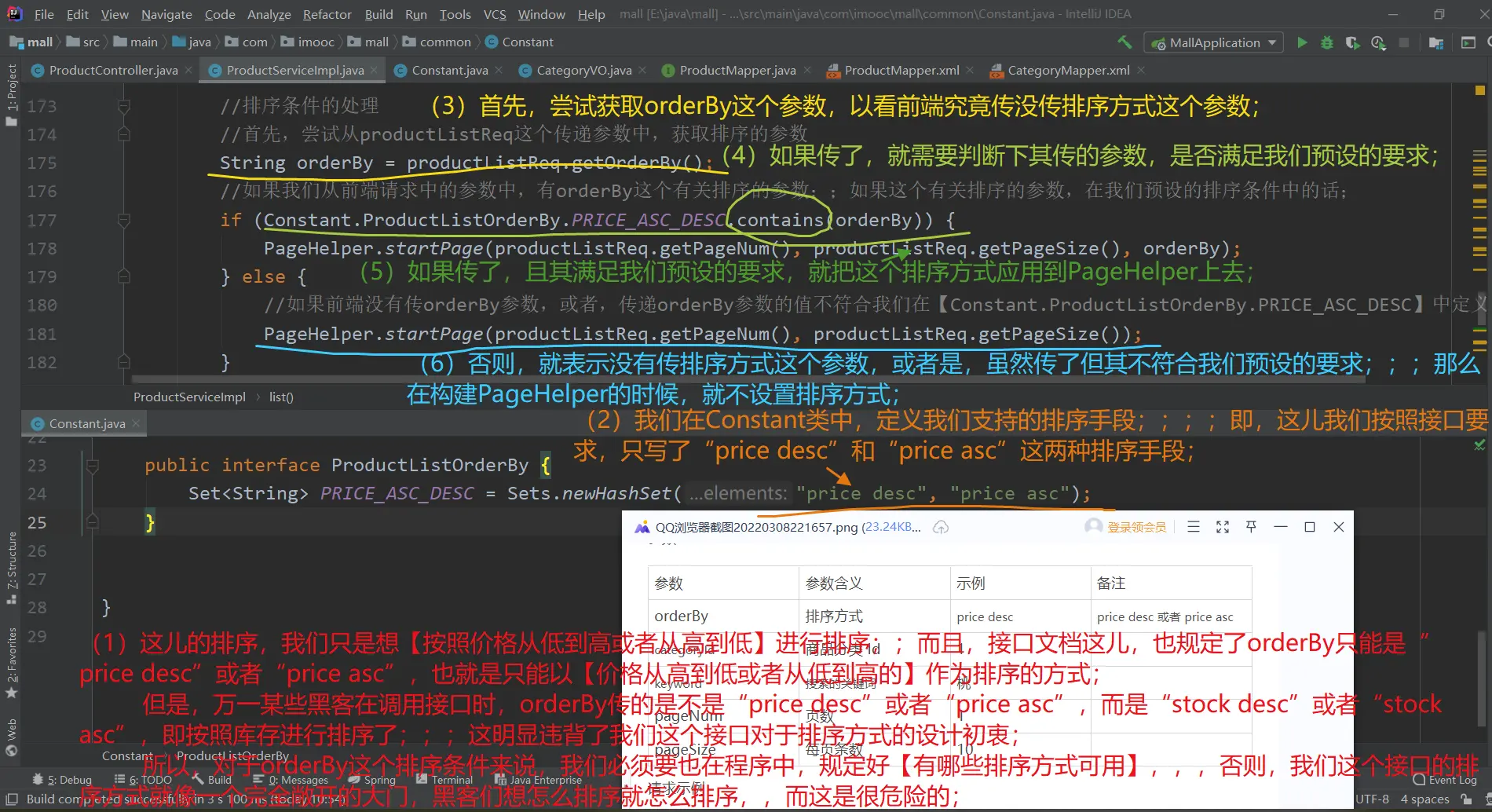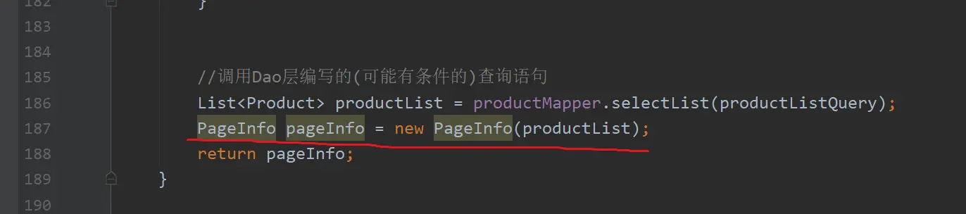 这是因为,orderBy是有关排序的一个条件;我们这儿是使用PageHelper这个分页插件来实现分页查询;而,PageHelper在构建的时候,就可以设置排序方式,即我们可以通过PageHelper来应用这个条件;所以,就没有把其构建到ProductListQuery这个Query对象上去;
