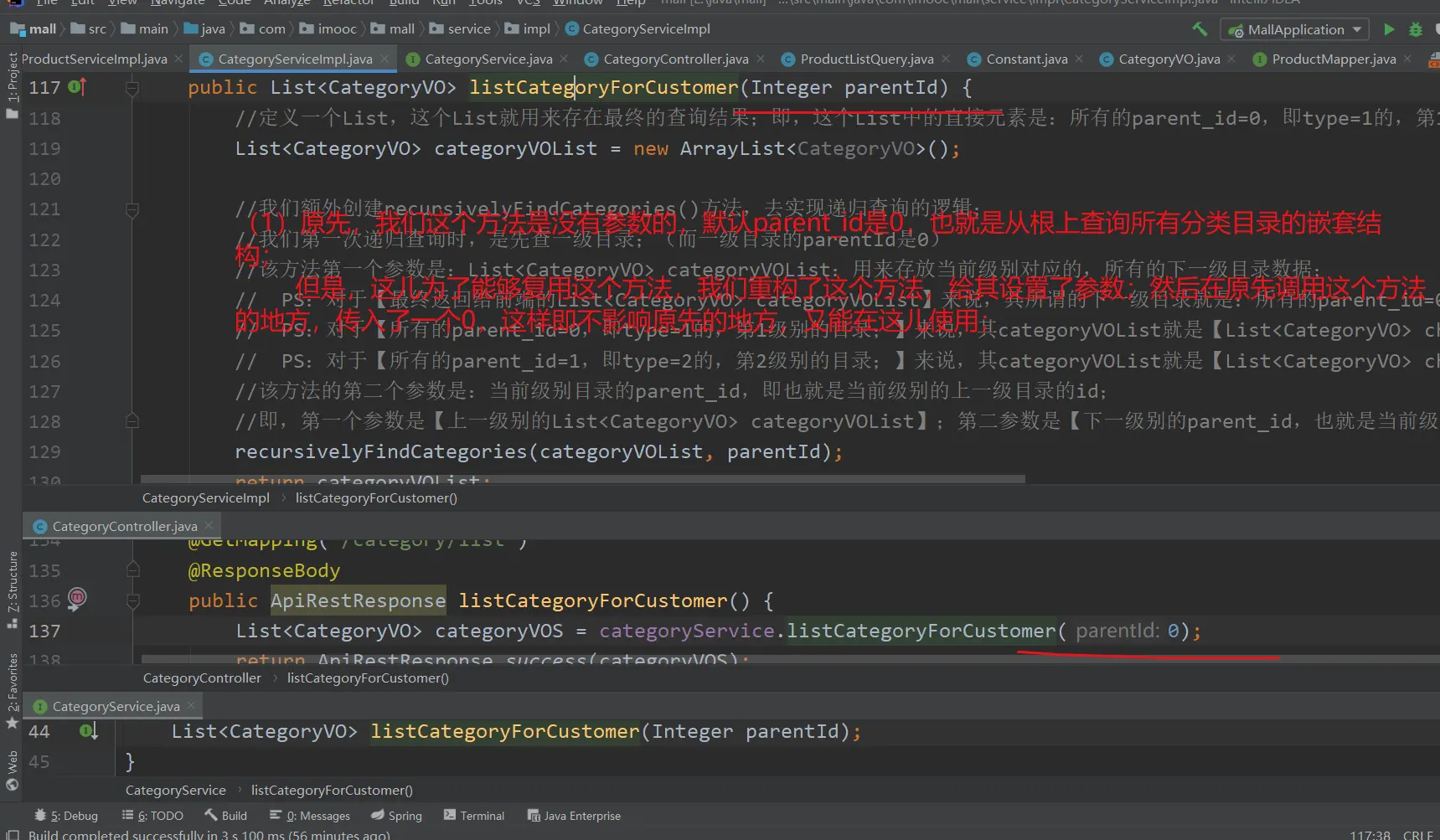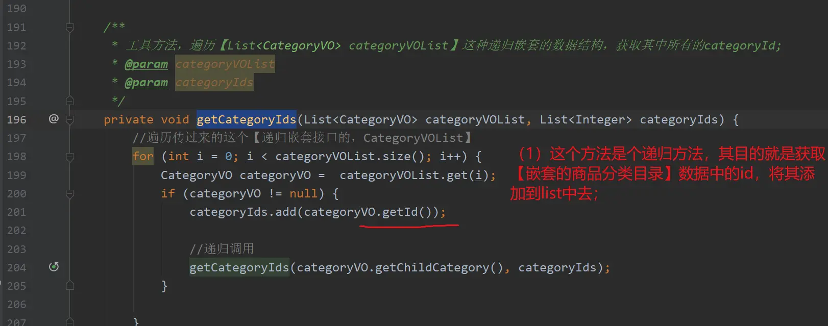 ● 开发前台的【分类列表(递归)】接口时,创建的:递归查询分类目录的方法listCategoryForCustomer()方法回顾;如果忘记了,可以回去看下【SpringBoot电商项目商品分类模块前台的分类列表递归接口】;