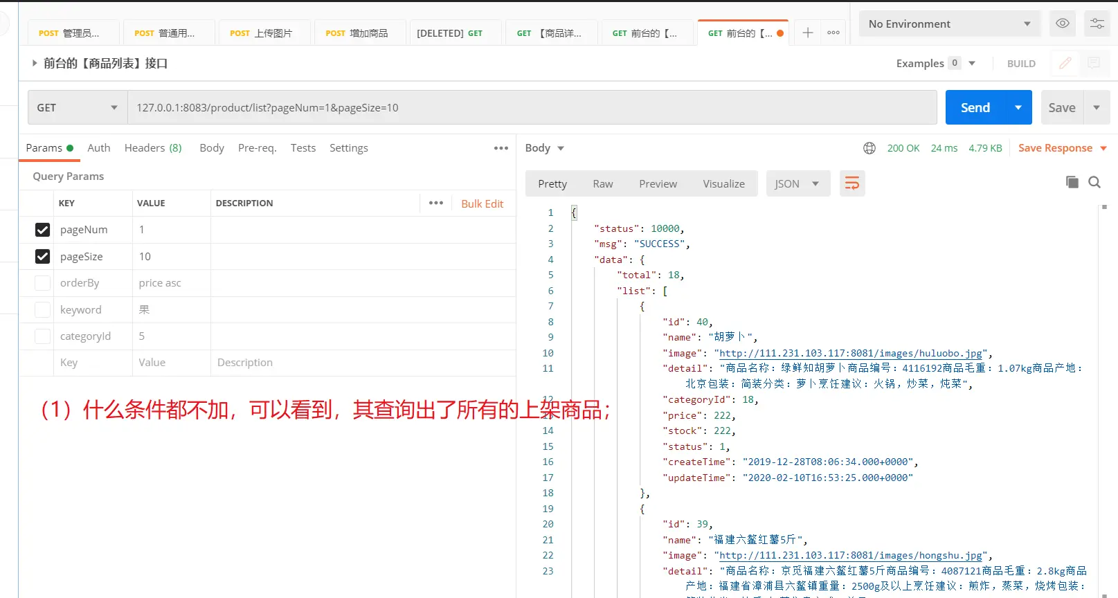 (1)我们可以不使用任何条件,来分页显示商品数据;