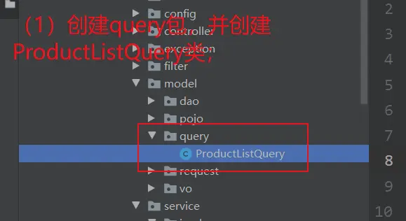 构建一个专门用于组织查询条件的Query对象:ProductListQuery类:用Query对象来组织查询条件,代码会更加有条理,也方便以后的扩展;(这个开发技巧,比较重要!!!)