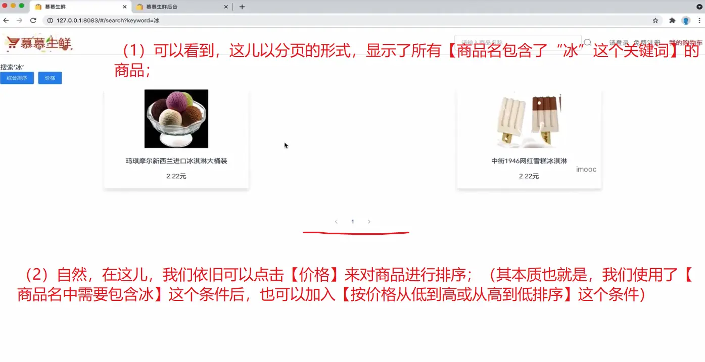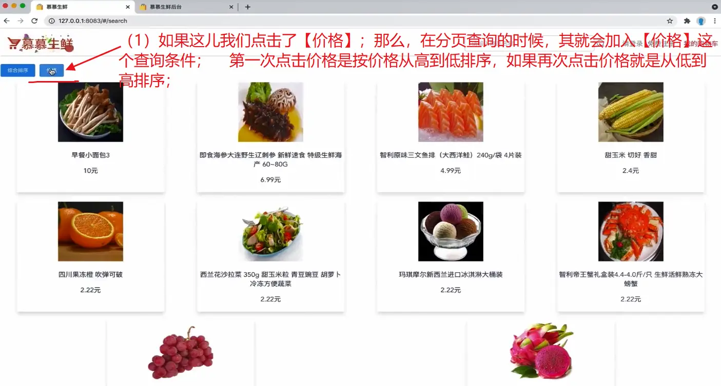(2)我们可以使用【按价格从低到高或从高到低排序】这个条件,来分页显示商品数据;