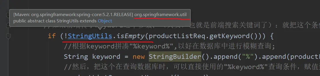 ● 这儿使用了Spring提供的一个判空工具:StringUtils.isEmpty();