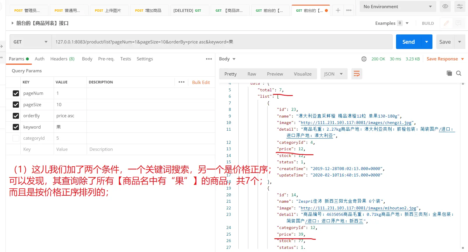 (1) 前台的【商品列表】接口,这儿主要的地方就是根据不同的条件,去搜索的功能;
