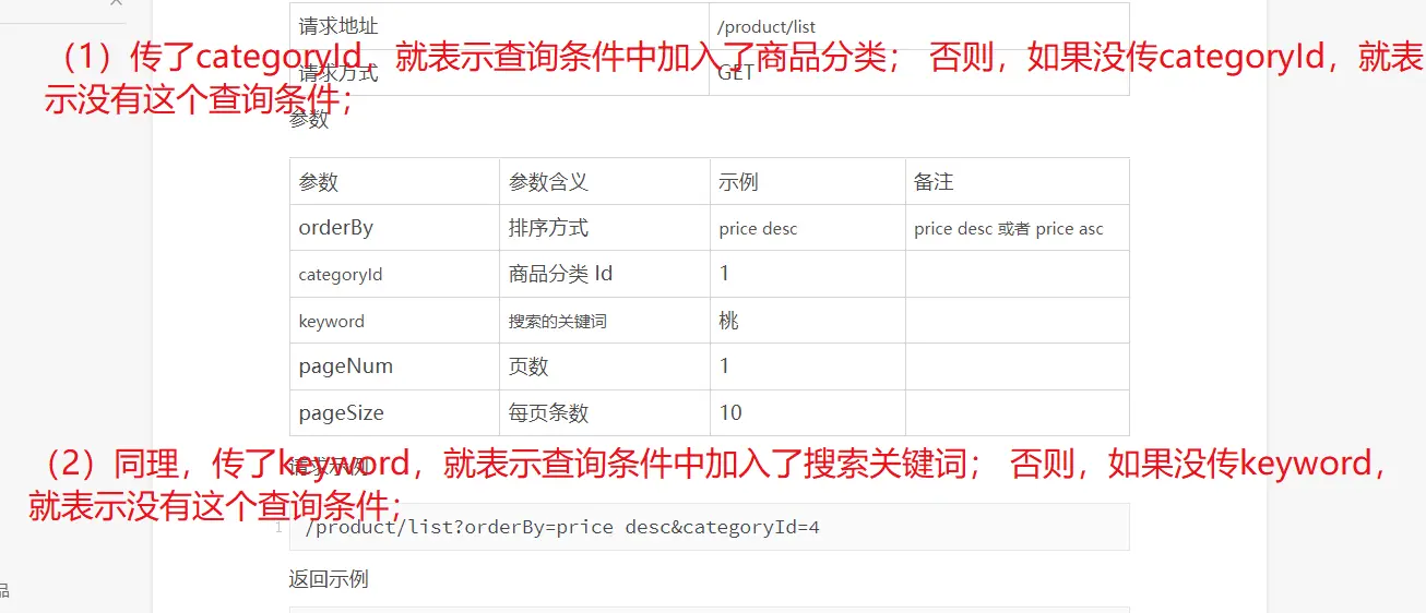 ● orderBy、categoryId、keyword这三个参数,可传可不传;如果传的话,我们才会使用这个参数,把这个参数作为条件去查询;
