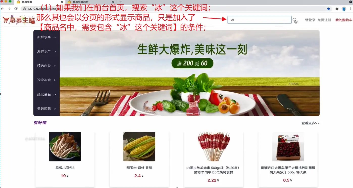 (3)我们可以使用【商品名需要包含某个关键词】这个条件,来分页显示商品数据;与此同时,也可以加入【按价格从低到高或从高到低排序】这个条件;
