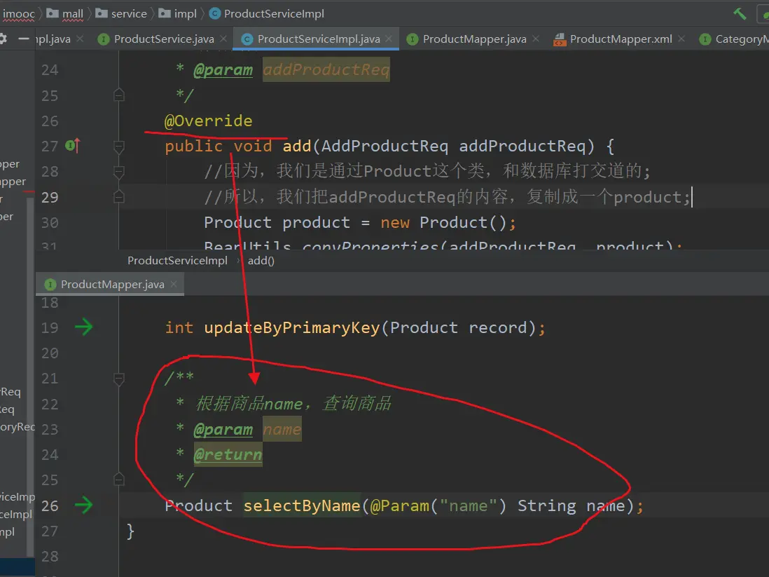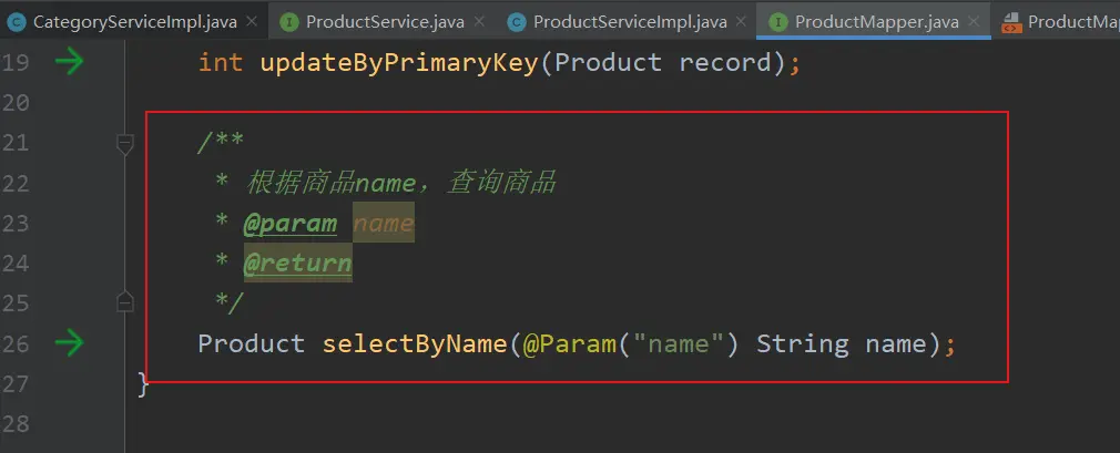 (2) 其中,在看商品是否重名的时候,我们在Mapper中创建了一个根据name查商品的方法;有关这个方法在下一部分介绍;