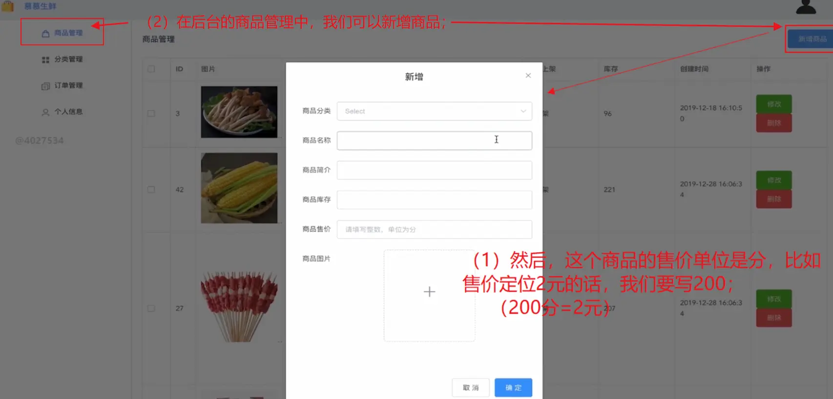(1) 本篇博客内容:后台的【增加商品】接口;