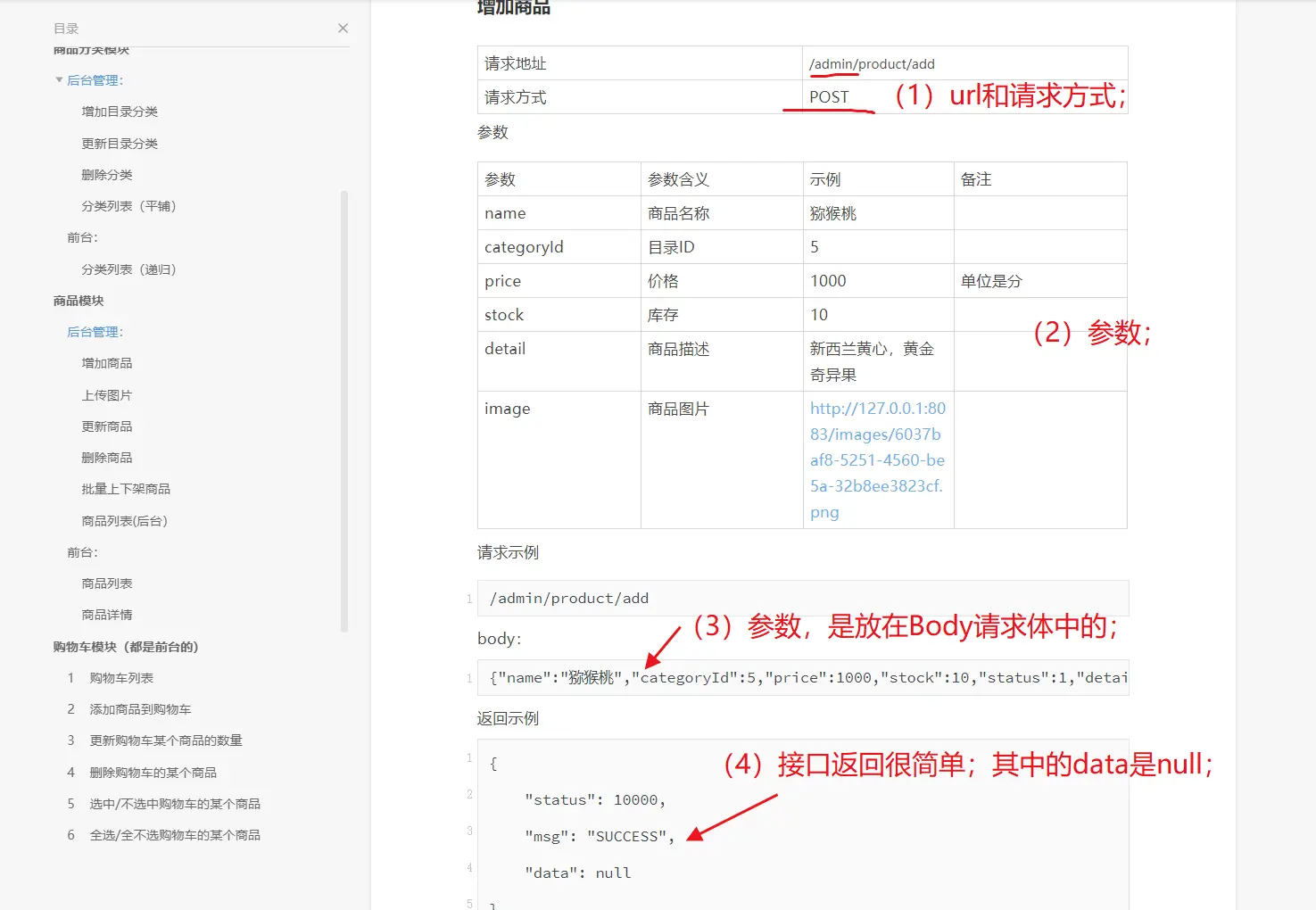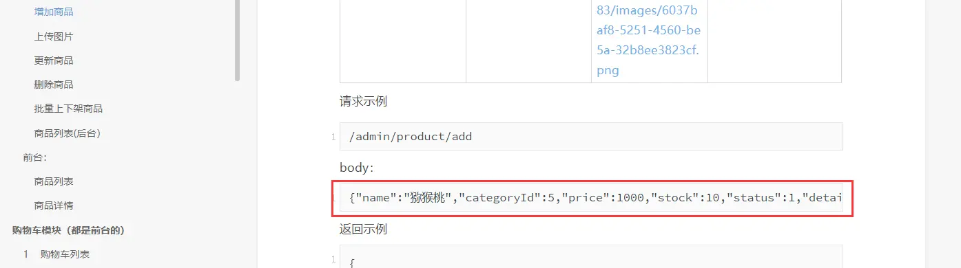 因为增加商品时候,需要附带上传商品图片;所以,就【增加商品】接口来说,其中的image属性,就是我们【把图片上传到服务器后的,图片的地址】;