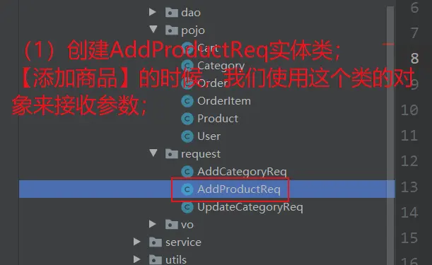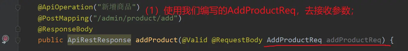 (2)因为接口参数很多,所以我们额外创建【AddProductRequest】这个bean去接收参数;同时,因为这儿需要参数校验,所以我们使用了Validation参数校验(@Valid);
