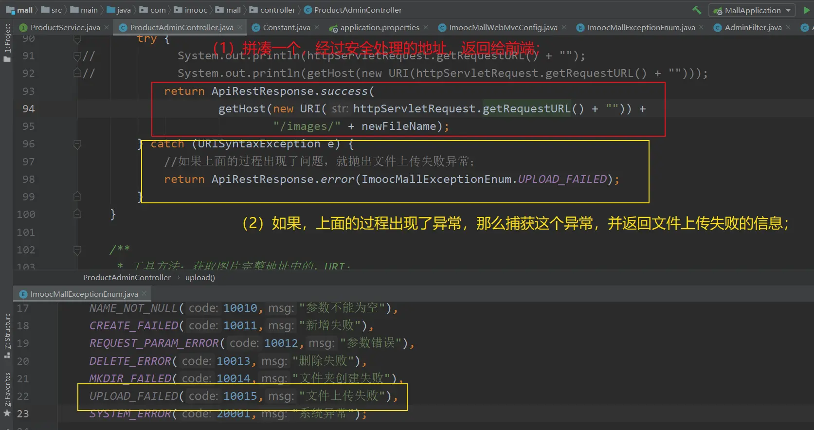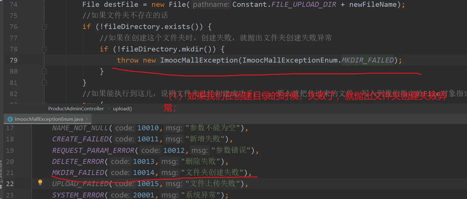 throw new ImoocMallException(ImoocMallExceptionEnum.MKDIR_FAILED);