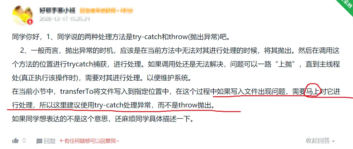 (8)上传文件时,如果出了问题:我们使用try-catch的方法把异常给捕获,而不是throw抛出;(PS:对这一点的理解,还不是太深……)