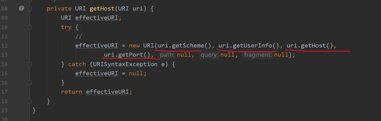 effectiveURI = new URI(uri.getScheme(), uri.getUserInfo(), uri.getHost(),