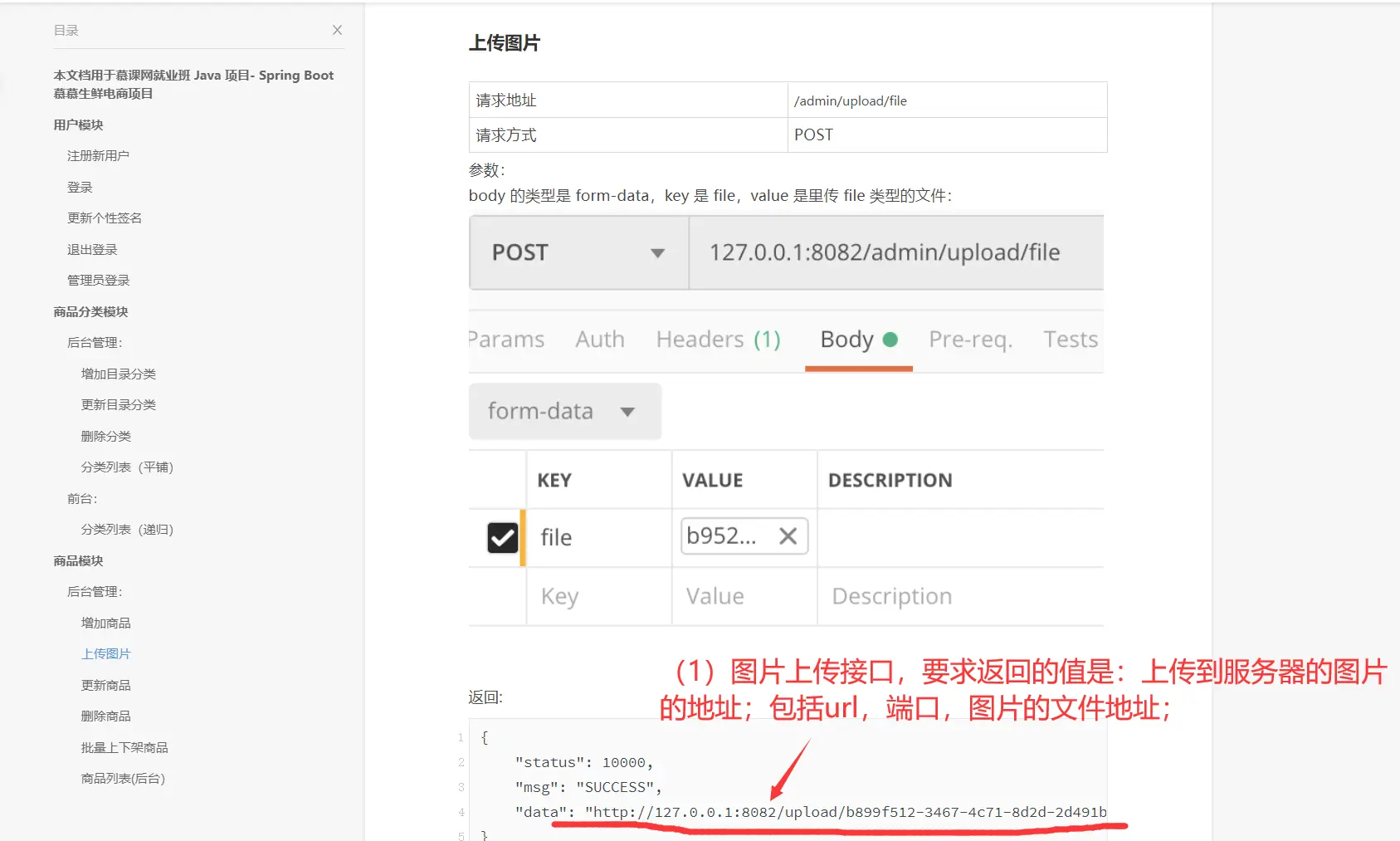 所以,在开发【增加商品】接口的时候,必须要开发图片上传的功能,也就是必须要开发【上传图片】功能;