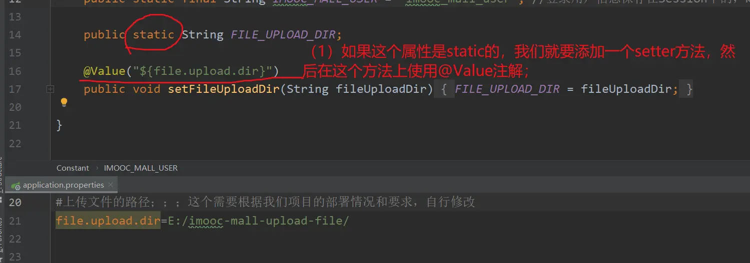 ● 第一个坑:在【SpringBoot的Value注解】中已经介绍过了:静态属性,添加一个非静态的setter方法,并在该setter方法上使用@Value注解;