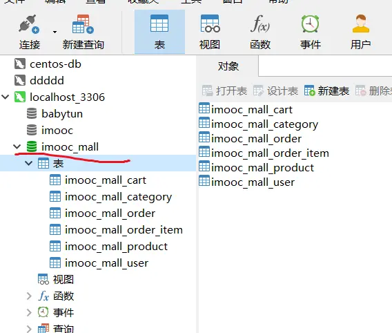 (2) 表需要加上前缀,比如这儿的【imooc_mal_user】红色部分就是公共前缀;