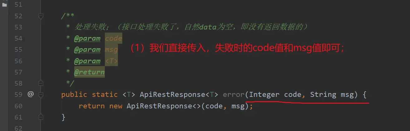 public static <T> ApiRestResponse<T> error(Integer code, String msg) {