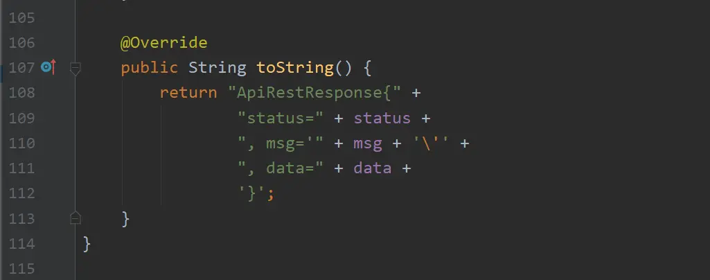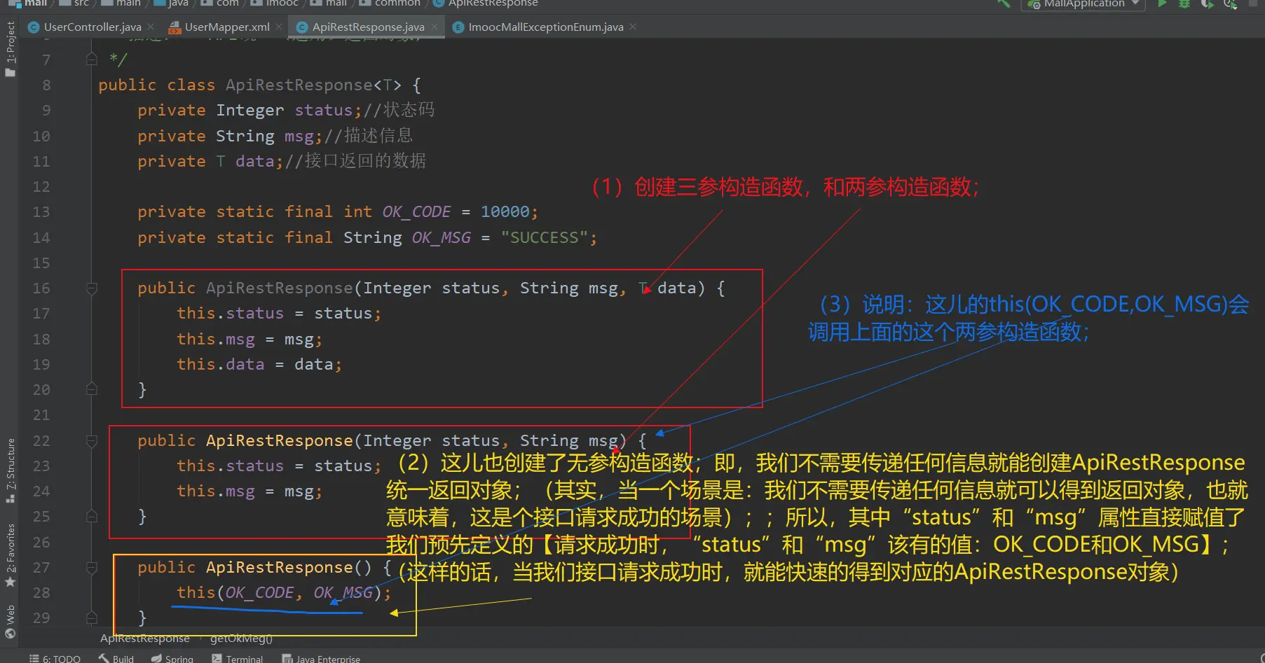 (9) 有的时候,在调试的时候,我们需要看看ApiRestResponse对象的内容;所以,这儿我们重写了toString()方法;