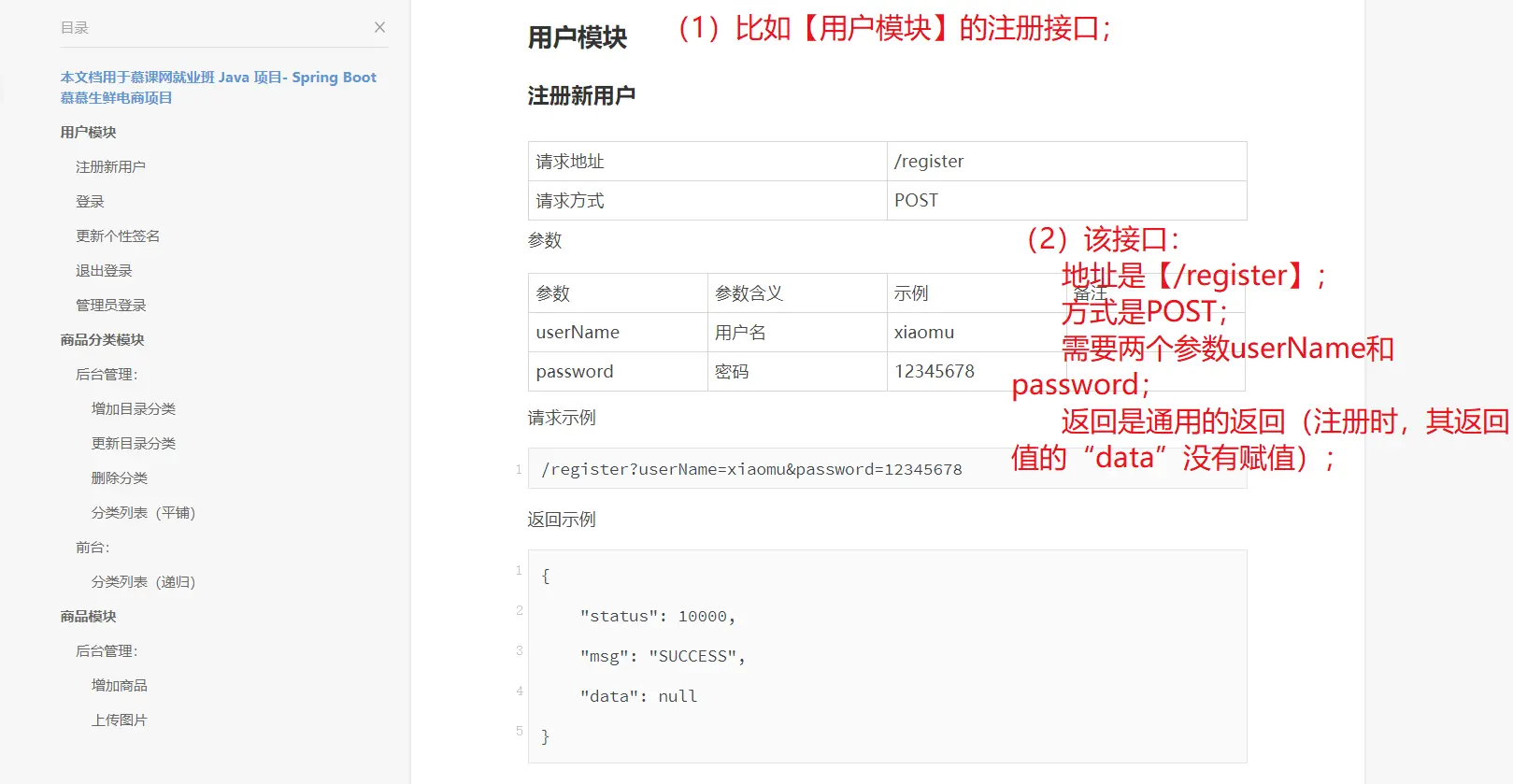 (2) 给出接口设计文档;这个文档,包含了整个项目的,所有接口的描述;即,这个文档描述了所有接口的入参、响应等内容;