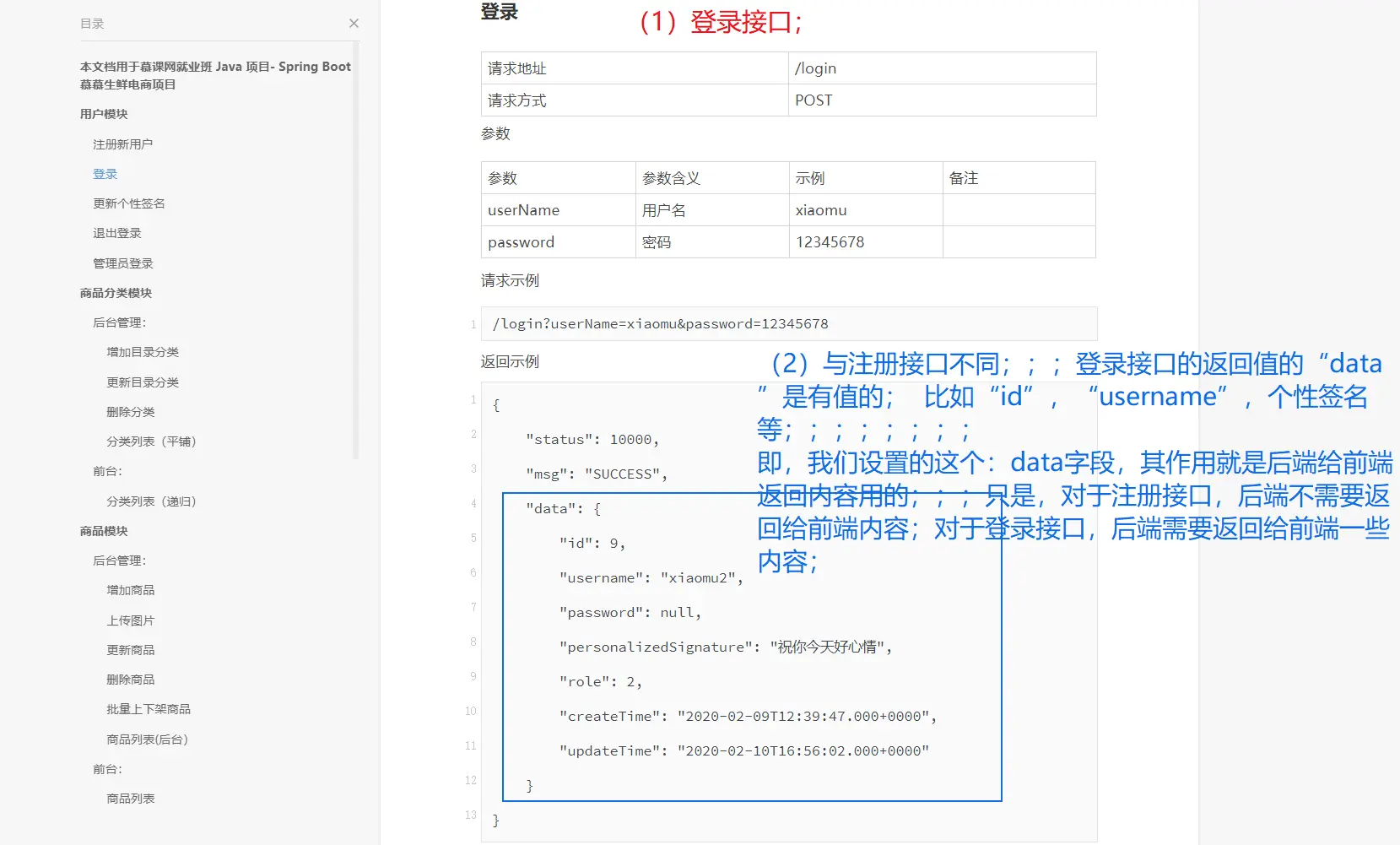 (2)普通用户的【登录】接口;