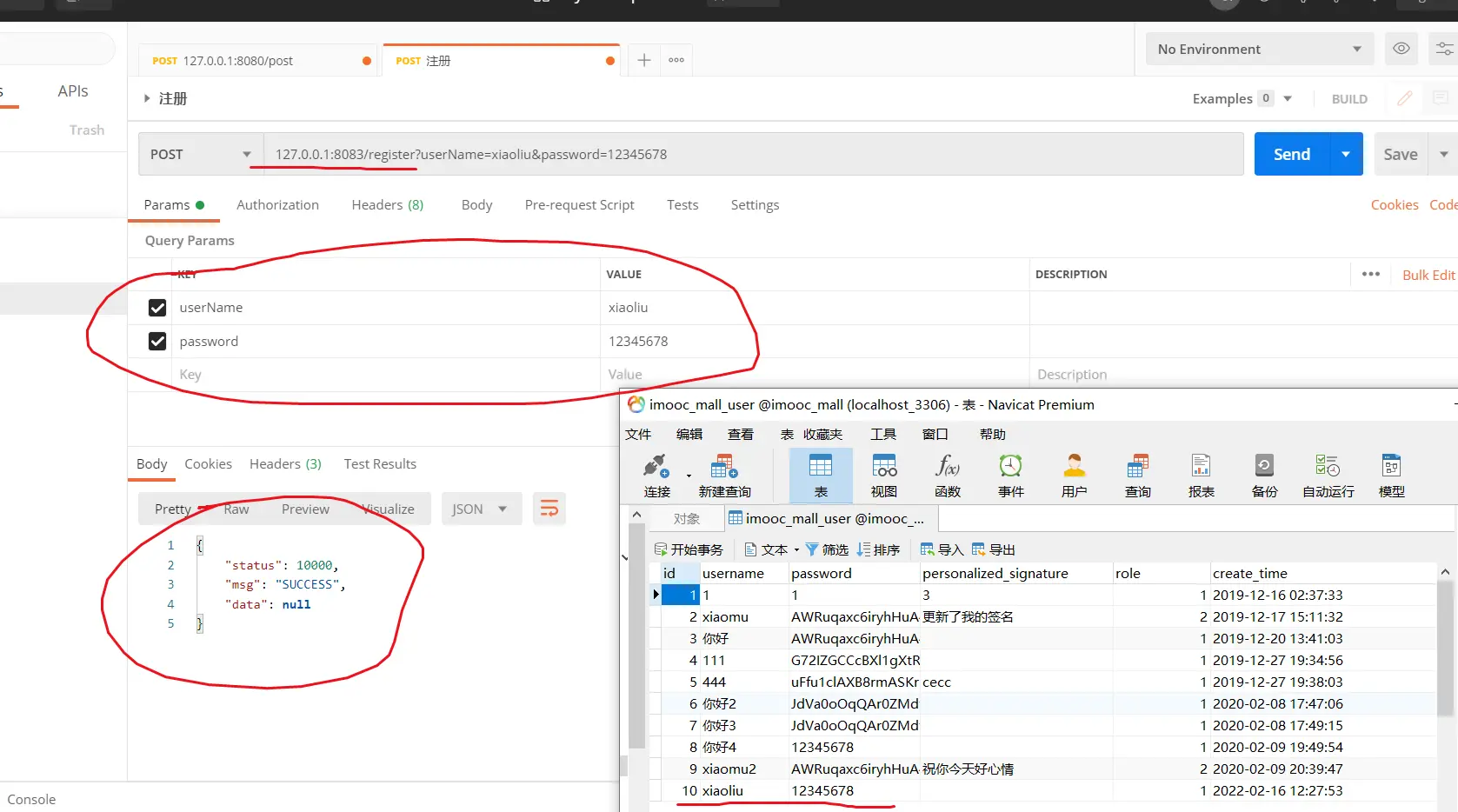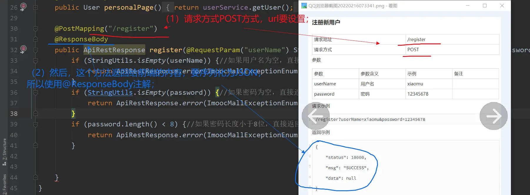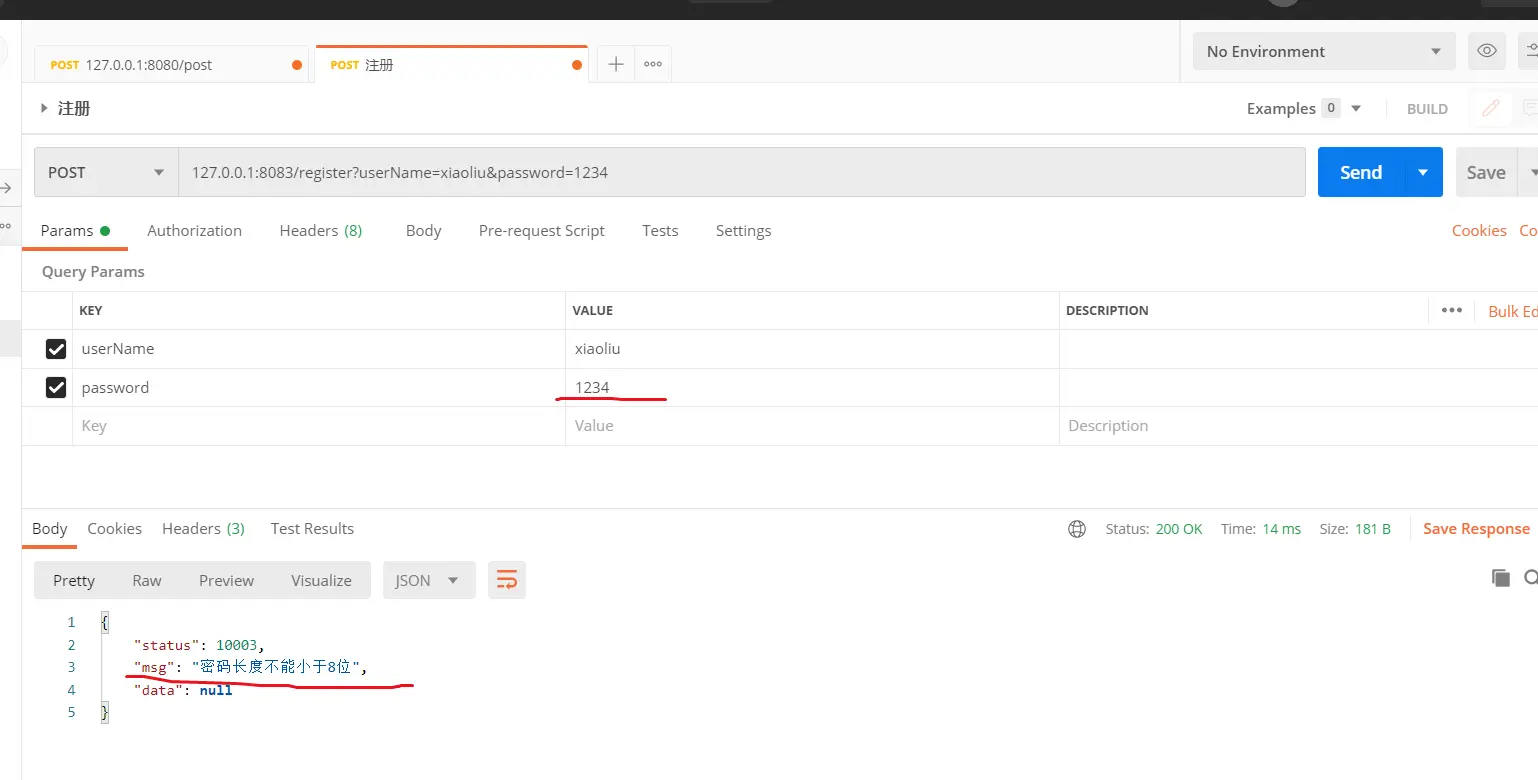 同时,在【SpringBoot电商项目用户模块介绍】也说明了注册接口的几个要求,比如:用户名不能为空、密码不能为空、密码不能小于8位,用户名不能重复等;