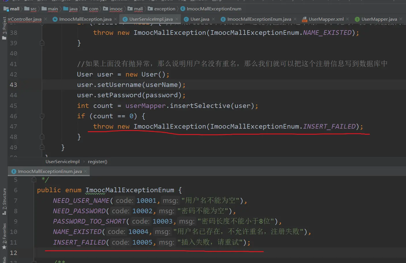 throw new ImoocMallException(ImoocMallExceptionEnum.INSERT_FAILED);